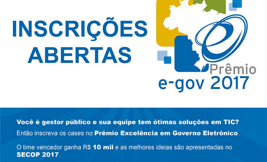 As inscrições para o Prêmio Excelência em Governo Eletrônico (e-Gov), realizado anualmente pela Associação Brasileira de Entidades Estaduais de TIC – ABEP e pelo Ministério do Planejamento, Desenvolvimento e Gestão, estão abertas. O prêmio, que já está na sua 16ª edição, busca reconhecer e incentivar projetos e iniciativas voltados à Tecnologia da Informação e Comunicação, que modernizam a gestão pública brasileira.