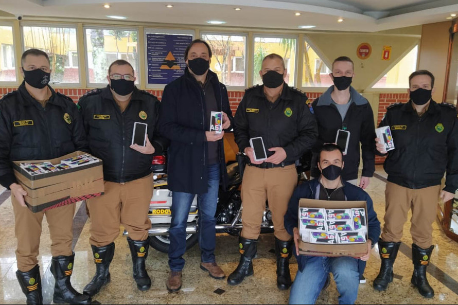 Os celulares doados pelo DER-PR possuem dados móveis do Estado e serão formatados, eles vão receber os aplicativos de segurança pública que só envolvam o policiamento rodoviário e sejam destinados somente para fiscalização e autuação, com acesso por login e senha, para depois serem distribuídos aos Postos Rodoviários e Companhias do BPRv de todo o Estado.