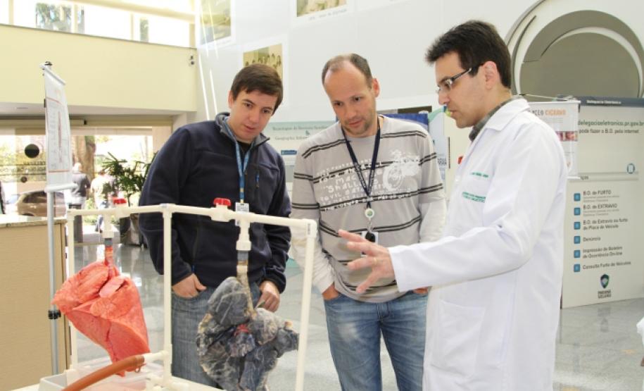 Houve também a exposição de duas peças anatômicas (pulmões) em tamanho natural, mostrando diferenças entre os saudáveis e os contaminados pelo tabagismo. Além disso, os profissionais de saúde prestaram informações sobre os benefícios da interrupção do ato de fumar, bem como de possíveis tratamentos.