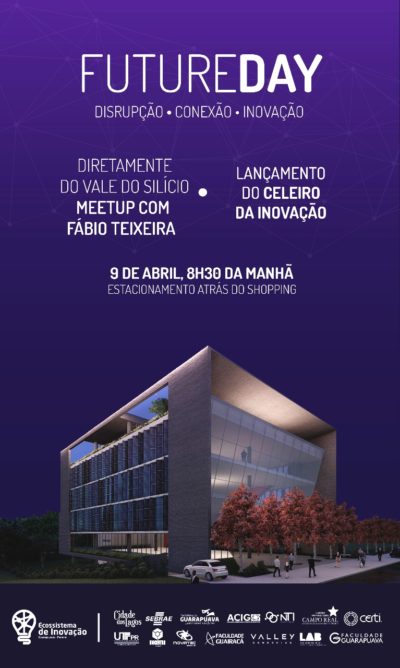A Celepar estará presente amanhã no evento Future Day, onde temas como disrupção, conexão e inovação serão abordados. Está programado também um meet up com o brasileiro Fábio Teixeira, fundador da startup HyperCubers, incubada no Vale do Silício. Teixeira participou de um projeto da Nasa que promete revolucionar o agronegócio, por meio de uma constelação de nano satélites e inteligência artificial.