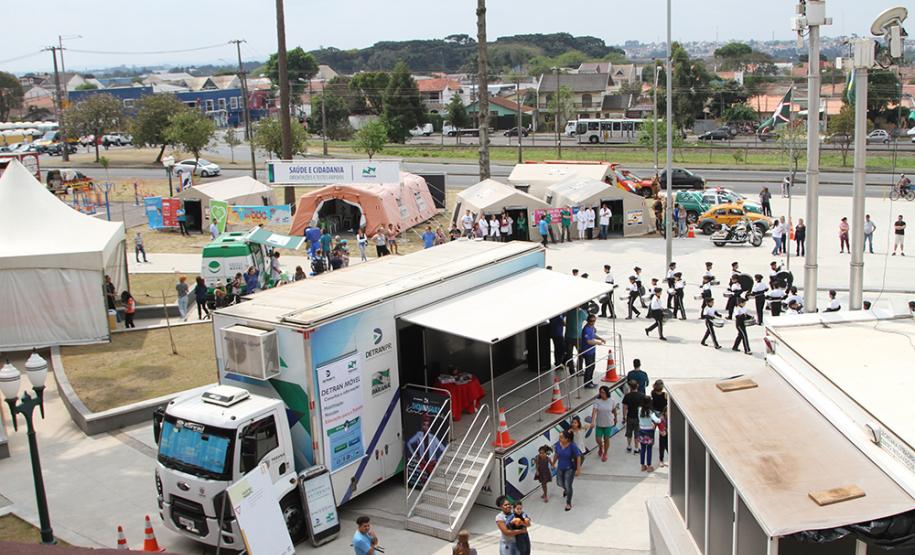 DETRAN - Vai oferecer serviços de habilitação e veículos, além de levar um terminal de autoatendimento para consultas e pagamento de taxas. A equipe de educação para o trânsito fará brincadeiras com crianças e orientará sobre dispositivos de segurança e direção segura. Também fará cadastro no Detran Fácil, que permite solicitação de serviços pela internet.