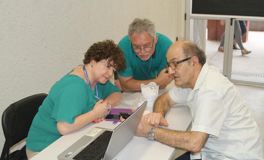 A equipe responsável pelo Curso Básico de Smartphone está no mutirão prestando atendimento aos cidadãos que tenham dúvidas sobre o uso do aparelho celular. Isto não apenas para as pessoas com idade superior a 60 anos.