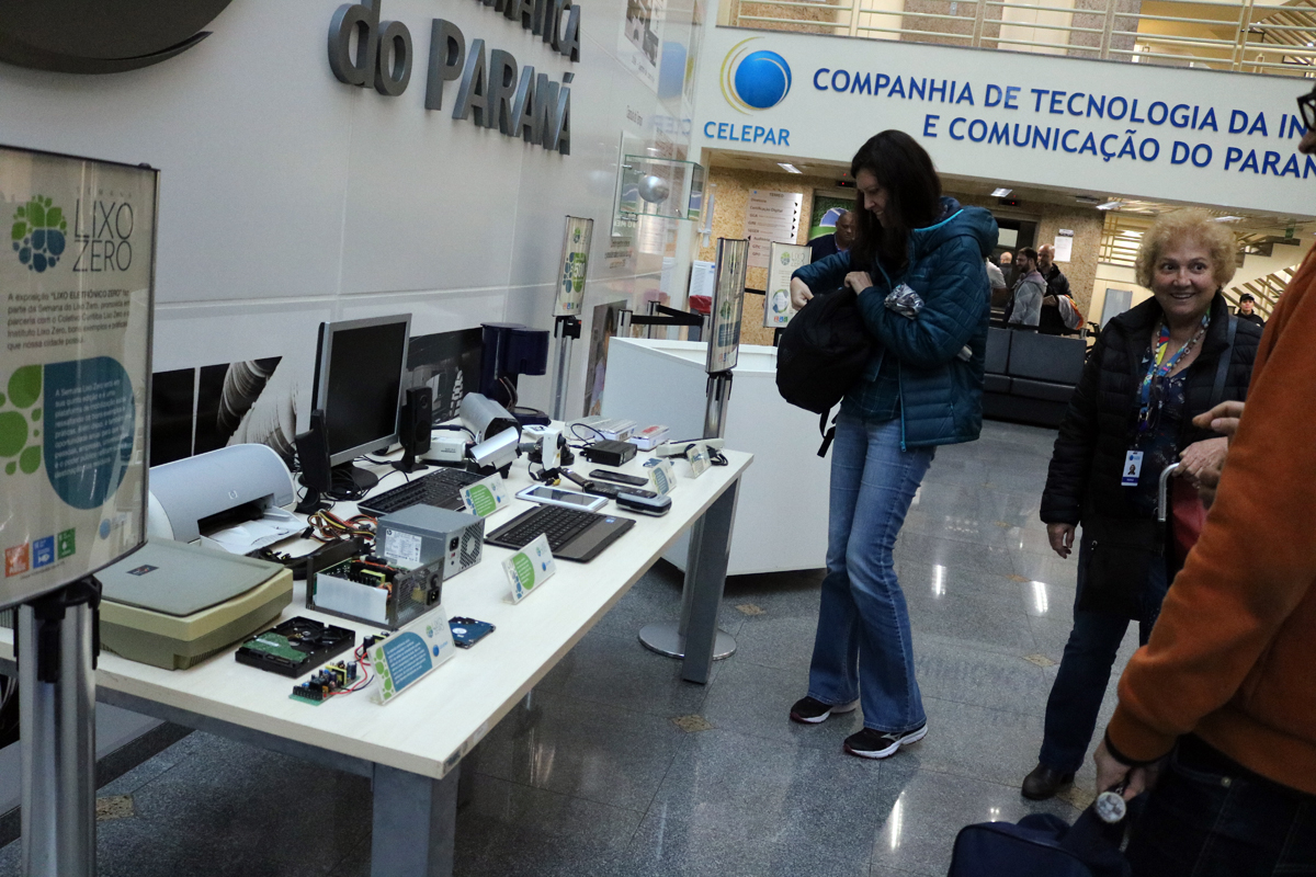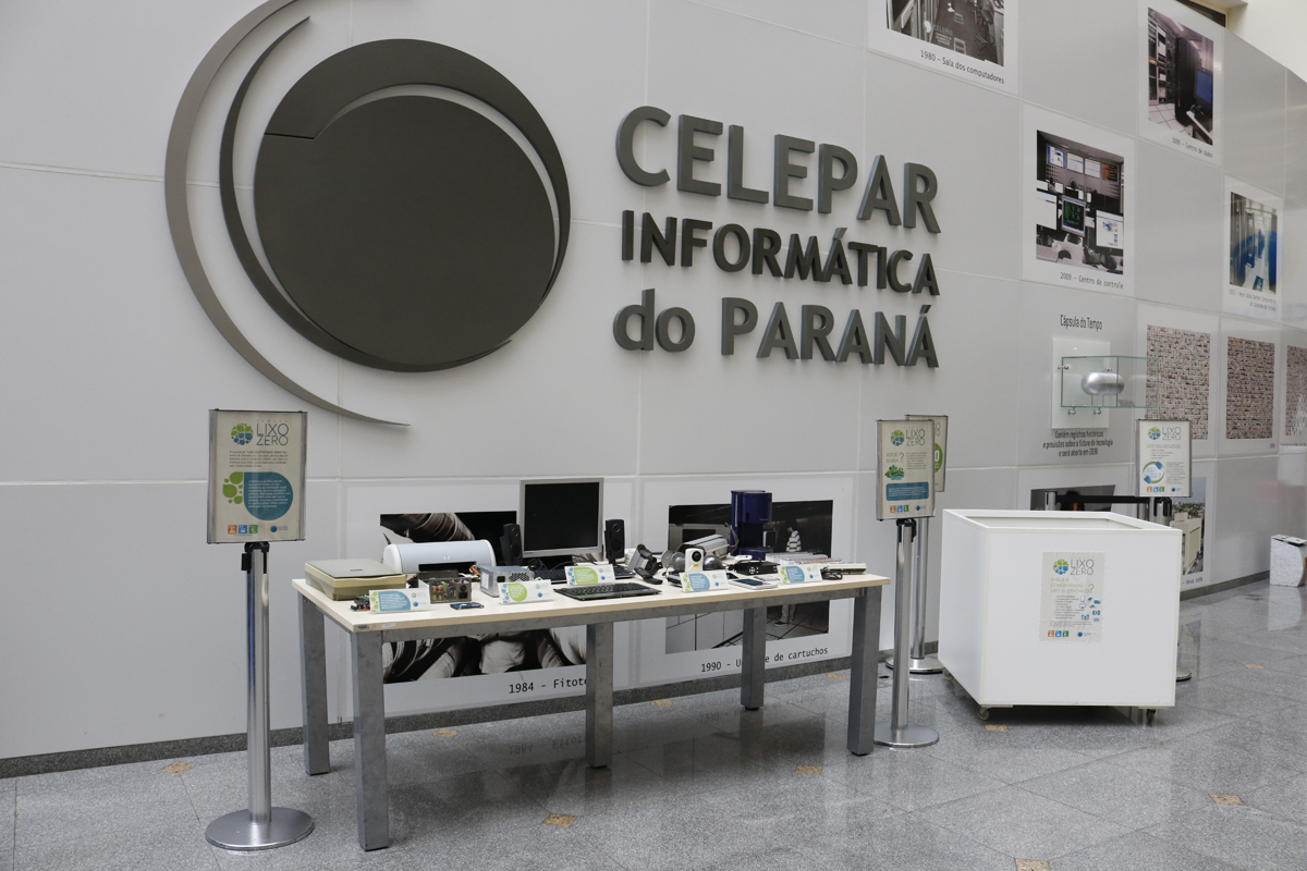 Trazendo a dimensão dos objetivos para o dia a dia, a Celepar promoveu uma exposição no Hall da companhia nos dias 25, 26 e 29 de outubro, contando com informações acerca da importância do projeto, além de ilustrar os males do descarte irresponsável de eletrônicos, dando o exemplo correto e incentivando os colaboradores a destinarem o seu lixo em local próprio.