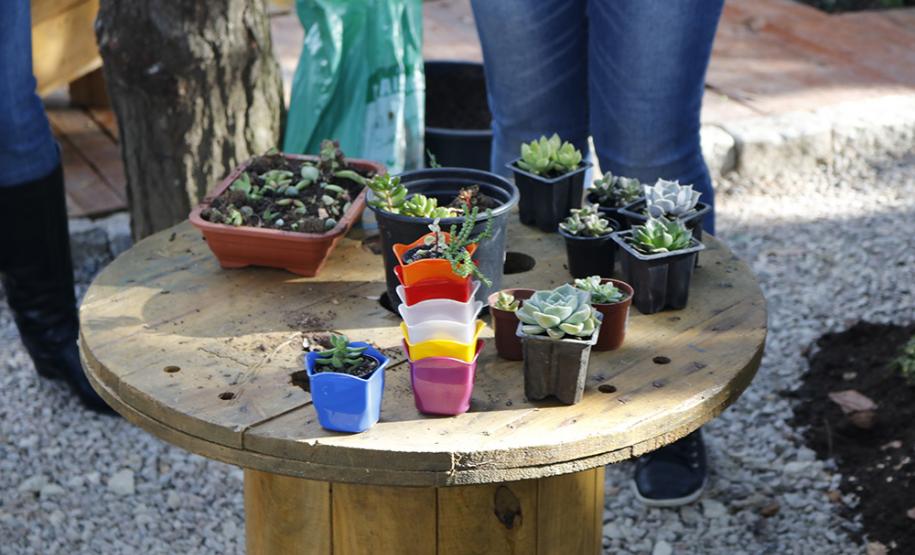 No estacionamento coberto da empresa, durante a manhã e a tarde do dia 30, foi exposto o trabalho da ministradora da oficina Jeniffer Padilha, o qual relaciona trabalhos com crochê e cultivo das suculentas.