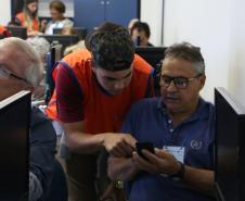 Aos 63 anos de idade, a aposentada Iolete Túlio Córdova disse estar bastante motivada para aprender a utilizar todos os recursos do seu smartphone. “Os instrutores são muito pacienciosos, eu não sabia nem tocar na tela e agora já posso colocar o que foi aprendido em prática. Posso até fazer ligações, sem ajuda”. Iolete é uma das alunas do curso de smartphone voltado às pessoas da terceira idade. Ela veio incentivada pelo seu esposo, João Dário Córdova, de 67 anos. “Já estou conectado às redes, vim para aprender mais e principalmente para incentivar minha esposa. Para tudo ela precisava de ajuda, até para ligar para as amigas”.