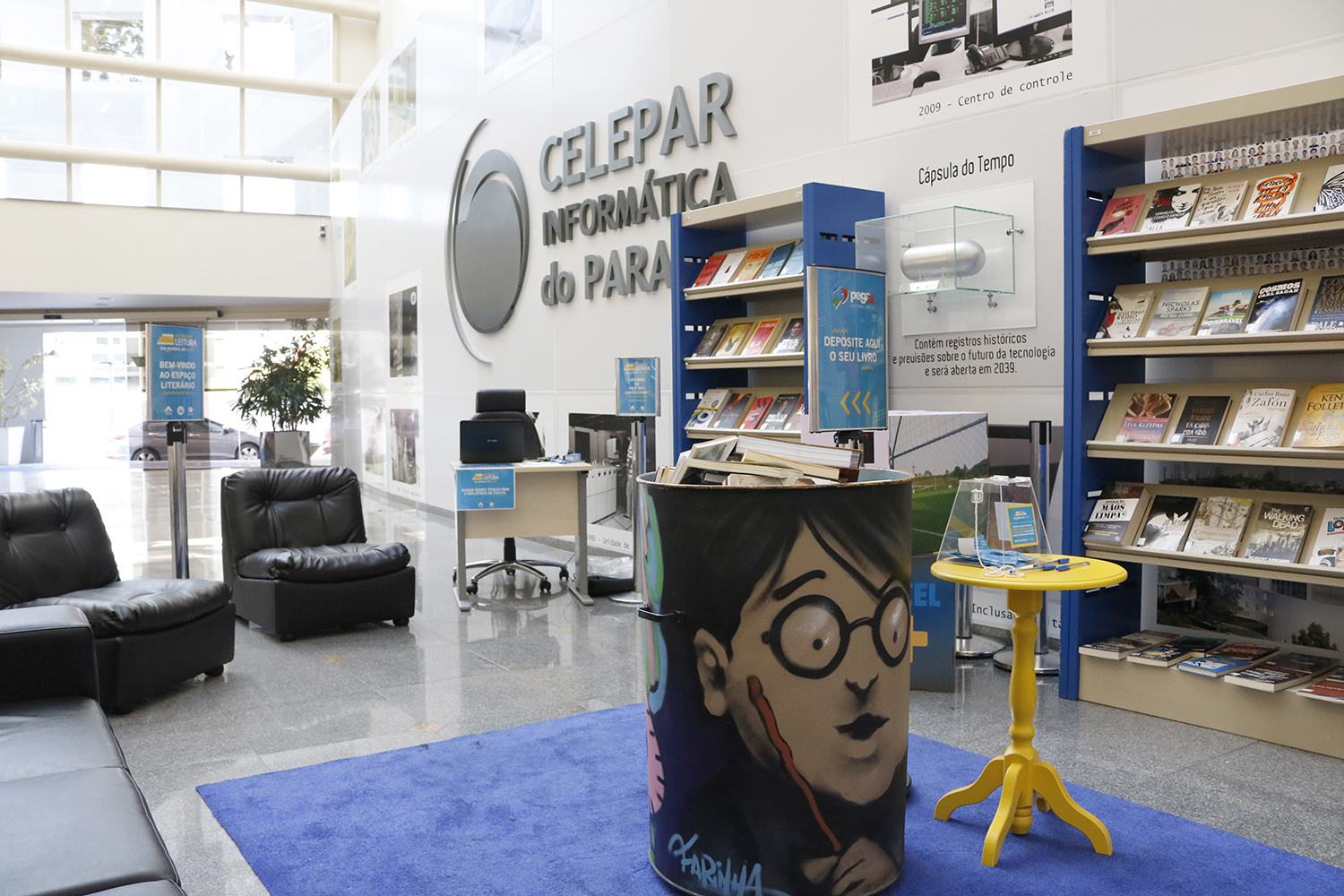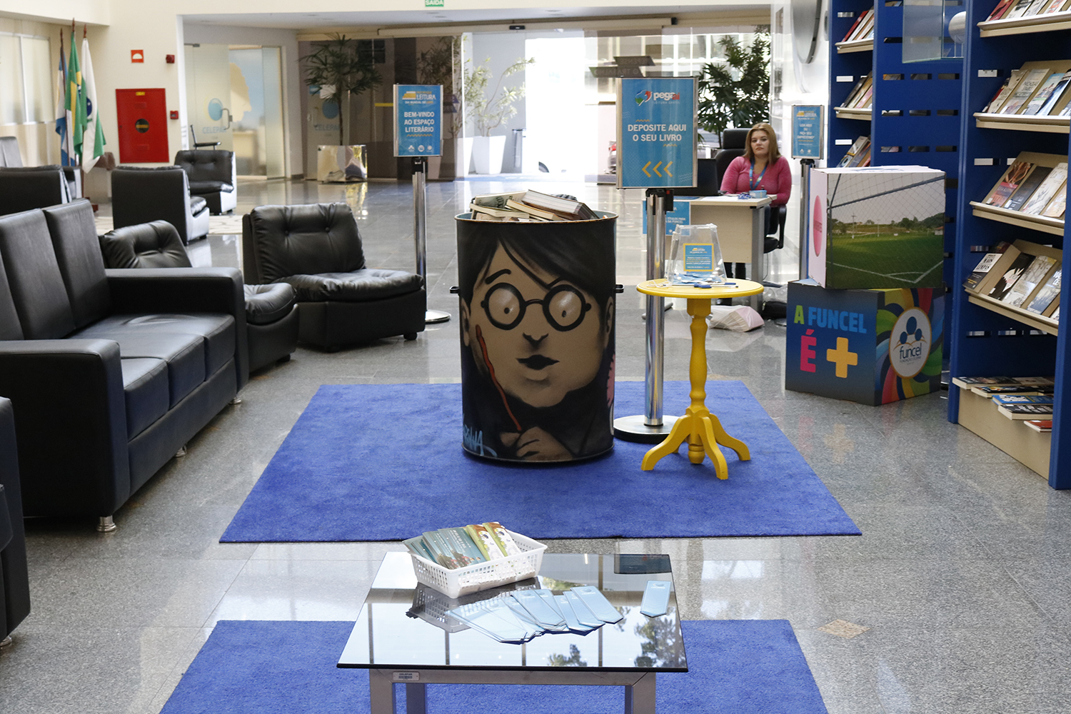O espaço contou com estantes de livros da Funcel, na qual os empregados puderam realizar empréstimos e com um tonel de doação de livros para o projeto Pegaí. Além disso, os empregados puderam pegar próximo as catracas, marca-páginas da Celepar.