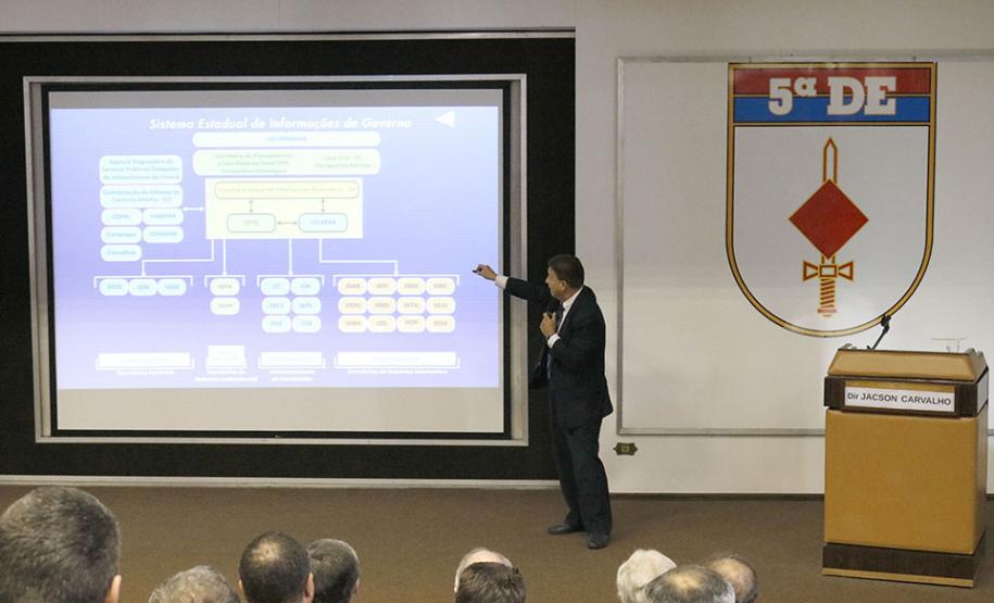 A abordagem sobre a política do Governo do Estado para a tecnologia da informação e comunicação que privilegia a inteligência das informações na prestação de serviços ao cidadão, foi a ênfase da participação do presidente da Celepar, Jacson Carvalho Leite, no II Simpósio de Gestão promovido pela 5ª Região Militar do Exército, no quartel do Pinheirinho, em Curitiba. Leite expôs o tema “Indicadores de desempenho” para uma plateia de 140 pessoas, entre oficias e sargentos.