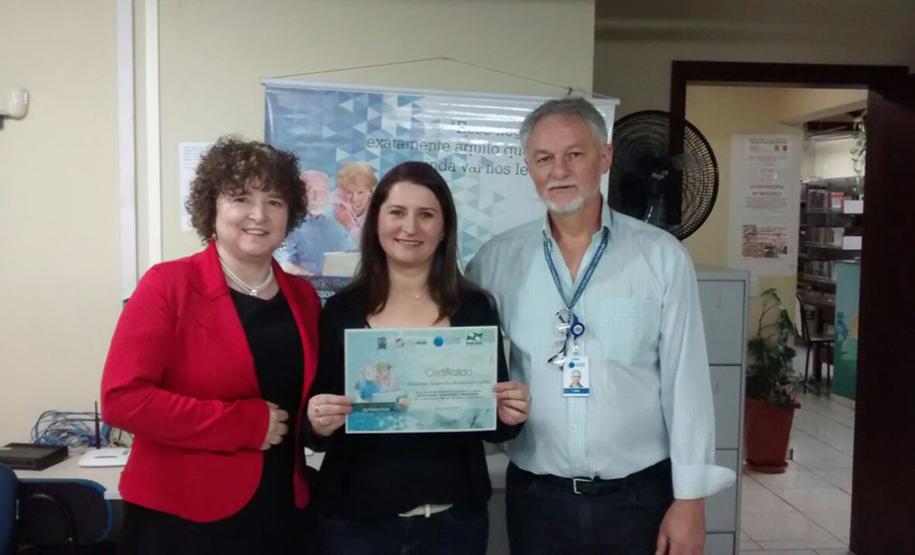A Biblioteca Cidadã Prof.ª Ivete Padilha Estival foi o local da cerimônia de entrega dos certificados para 12 alunos que concluíram o Curso de Internet e Rede Social – Programa Inclusão Social da Pessoa Idosa, no último sábado, dia 15 de julho. O evento contou com a presença do prefeito de Rio Azul, Rodrigo Skalisz Solda, do secretário municipal de Esportes, Turismo e Cultura, Osvaldo Kosciuk Junior, de Dircélia Maria Alessi e Luiz Carlos de Lima pela Celepar e Terezinha Aparecida Markovicz Gueltes, tutora no Espaço Cidadão, que ministrou o curso para os alunos.