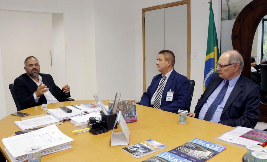 O secretário da Justiça, Trabalho e Direitos Humanos (Seju), Artagão Júnior, recebeu nesta quarta-feira (28), em seu gabinete, o presidente da Companhia de Tecnologia da Informação e Comunicação do Paraná (Celepar), Jacson Carvalho Leite e equipe técnica, para alinhar questões referentes às ações da feira de serviços do Paraná Cidadão.