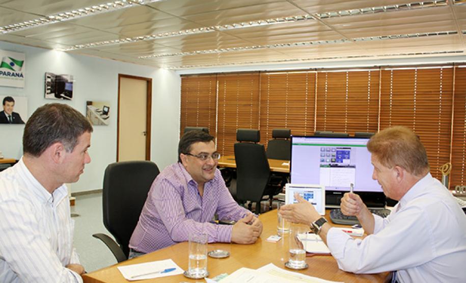 O planejamento das ações da Secretaria da Saúde com base em soluções de tecnologia da informação e comunicação foi o tema principal da reunião desta terça-feira (09) entre o presidente Jacson Carvalho Leite e o secretário Michele Caputo Neto, que destacou a condição de “grande parceira” da companhia em várias ações desenvolvidas por aquela pasta. “Graças a competente gestão da Celepar nos foi possível enfrentar doenças como a dengue e a gripe H1N1 de forma acertiva, devido ao acesso rápido às informações disponíveis, através dos vários sistemas de governo alojados aqui na empresa”, destacou ele.
